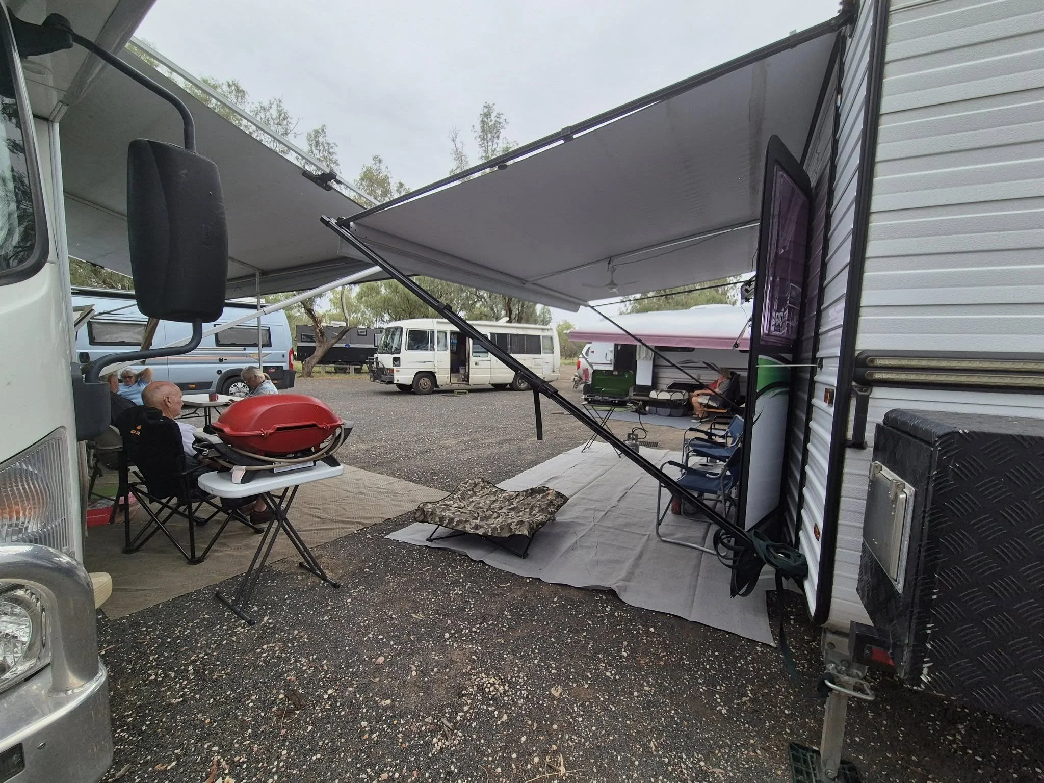 We arrived at the showground, paid our fees, settled in, and had a couple of drinks. A lady came along and said, "We’ll get 50mm of rain tonight." Most of us laughed, but it rained all night. I would suggest that, based on the water lying around, we got more than that by morning.